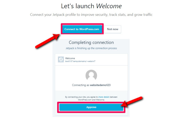 أخيرًا ، ستحتاج إلى ربط ملفك الشخصي في Jetpack بـ WordPress لتحسين الأمان وزيادة عدد الزيارات وتتبع الإحصائيات.