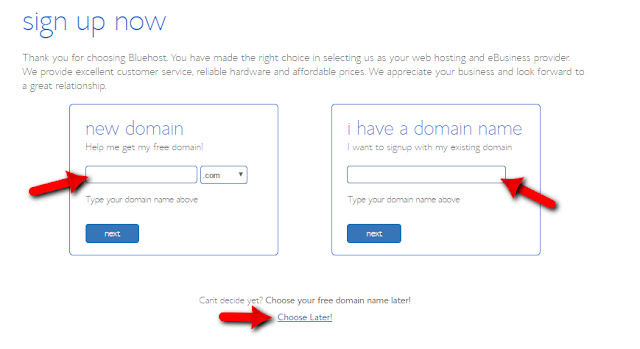 3. يمكنك اختيار النطاق المناسب لك ولا يجب ان يكون بالضرورة بإمتداد Com. يمكنك إختيار. net. و org. و .us و .biz و. info إذا كان الخيار الأول لنطاقك غير متاح.